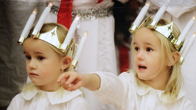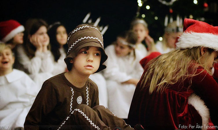 Luciadagen firades med ett fint framträdande från vår lågstadiekör. De sjöng för hela skolan. Fotograf: Perka Tessem
